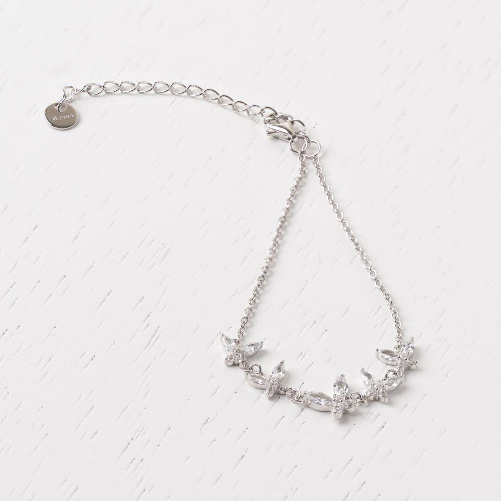 سوار "بترفلاي" هو قطعة مجوهرات أنيقة تتميز بتصميم عصري وفاخر، حيث يتزين بتفاصيل فراشات صغيرة مزينة بأحجار زركونية لامعة، مما يضفي لمسة من التألق والجمال على التصميم. تم تصنيع السوار من الفضة الاسترليني عيار 925 ومطلية بالروديوم لضمان مقاومته للخدوش والتأكسد. السوار مزود بنظام قابل للتعديل ليتناسب مع معصمك بكل راحة.