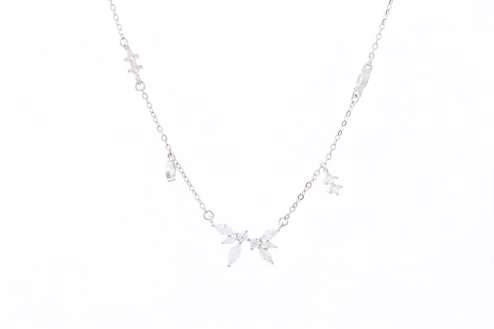 - ماذا يتضمن البكج؟قلادة "ماريسا": تصميم راقي يتألق بحبات من الزركونيوم المتلألئ الموزعة ببراعة على هيئة أوراق رقيقة، مما يمنح العنق لمسة من الجمال المستوحى من الحدائق.