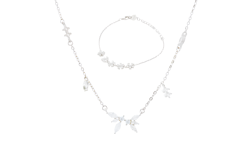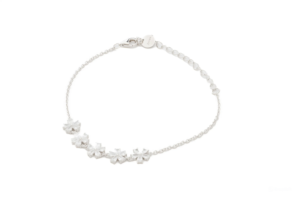 - سوار "غاردينيا": قطعة أنيقة ورومانسية تتزين بسلسلة من الأزهار الصغيرة المرصعة بالأحجار اللامعة، تضفي على معصمك تألقاً ناعماً وجذاباً.