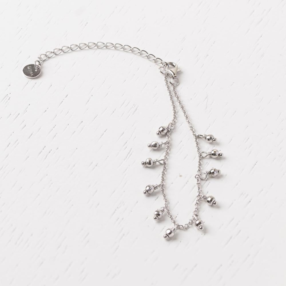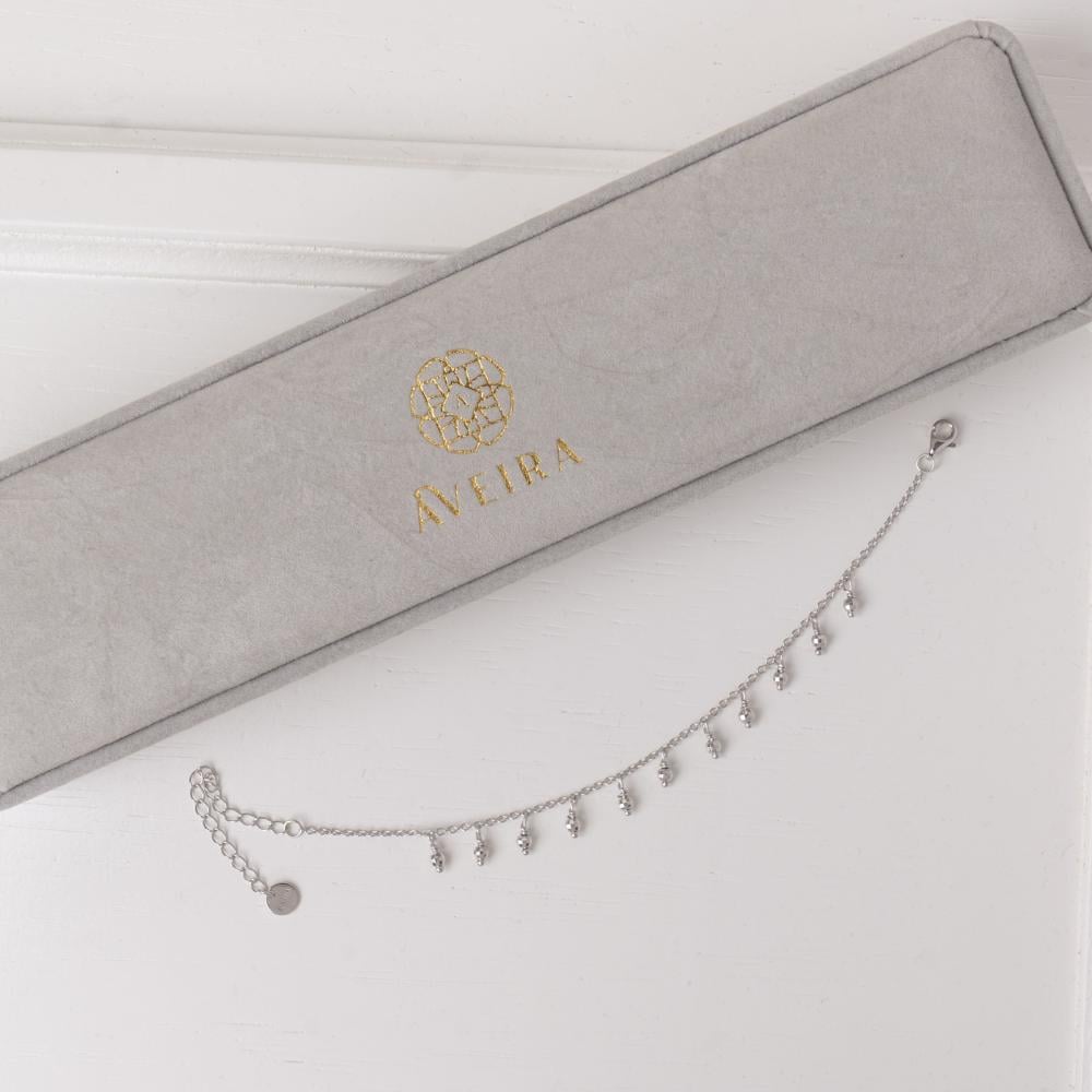 سوار "ماريسا" هو قطعة مجوهرات أنيقة تتسم بتصميم عصري وبسيط، مع لمسة من الفخامة. يتزين السوار بحلقات فضية صغيرة تتدلى بشكل جذاب، مما يضفي عليه مظهرًا أنيقًا وحيويًا. تم صنع السوار من الفضة الاسترليني عيار 925، ومطلية بالروديوم لضمان مقاومته للخدوش والتأكسد، مما يضمن له لمعانًا دائمًا. السوار مزود بسلسلة قابلة للتعديل ليتناسب مع معصمك بكل راحة.