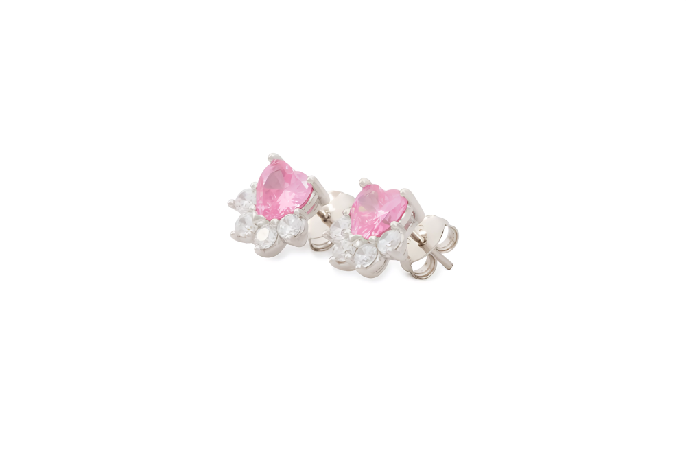 تأسر هذه الأقراط الأنظار بتصميمها الرقيق والأنيق، حيث يتوسط كل قرط حجر زركون وردي رائع على شكل قلب، يرمز إلى الحب والجمال الأبدي. يحيط بالحجر الرئيسي ثمانية أحجار زركون بيضاء صغيرة تتلألأ ببريقها، مما يضفي على القطعة إشراقة لامعة وفريدة. تم تصنيع هذه الأقراط من الفضة الاسترليني عيار 925، مما يضمن لها جودة استثنائية ومتانة لا تضاهى. تم طلاؤها بطبقة من الروديوم، مما يمنحها لمعانًا دائمًا ويحافظ على جمالها على مر الزمن.